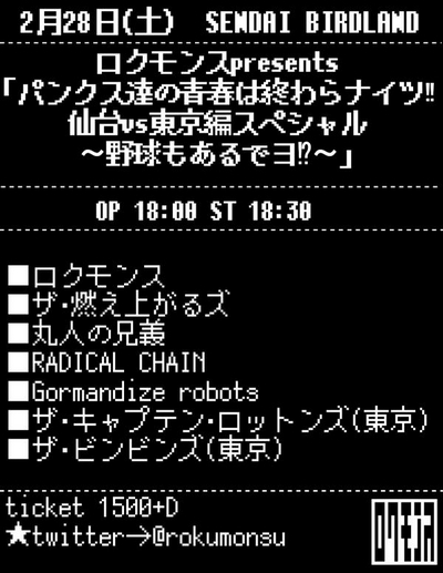 -ロクモンス Presents-Op/18:00 St/18:30 Ticket:前売当日共\1,500 (Drink代別途\400)