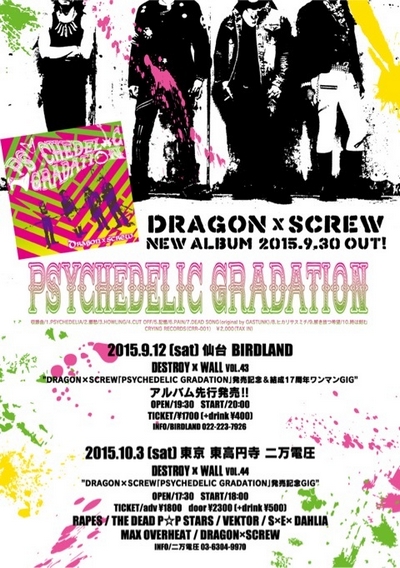 | 9/12(土) | -DRAGONxSCREW Presents- Op/19:30 St/20:00 Ticket:前売当日共\1,700 (Drink代別途\400)