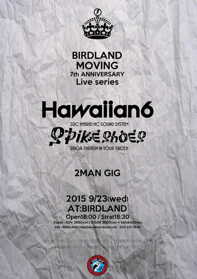 | 9/21(月) | [BIRDLAND moving 7th ANNIVERSARY live series vol.2]Op/18:00 St/18:30 Ticket:前売当日共\1,500 (1Drink付)[act] BEHIND THE 8 BALL (郡山) / Paramexico (新庄) / AsphyxiA / Vice City Slave / CONTRAIRE / FLEX