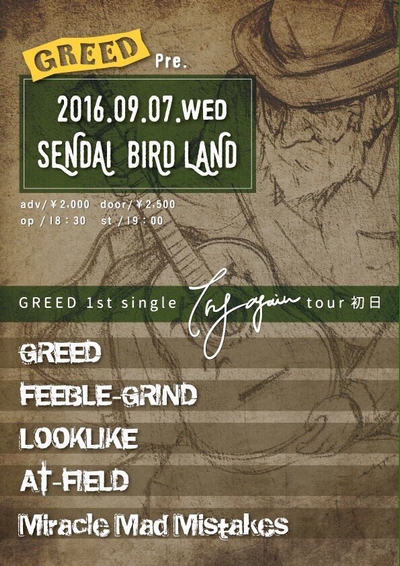 AT-FIELD (大阪) / LOOKLIKE (大阪) / Miracle Mad Mistakes / FEEBLE-GRIND / GREED