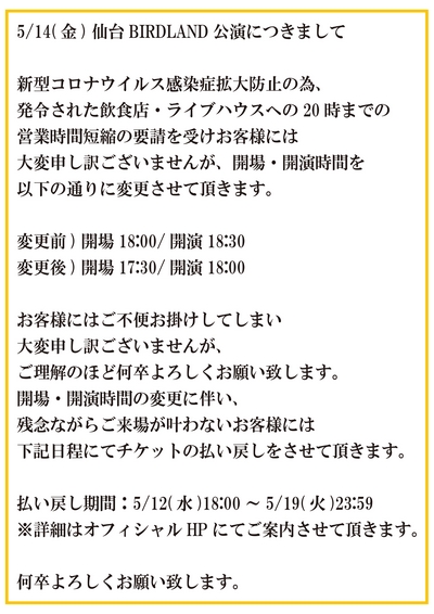 Op/18:00 St/18:30 ←Op/St時間が変更になりました!