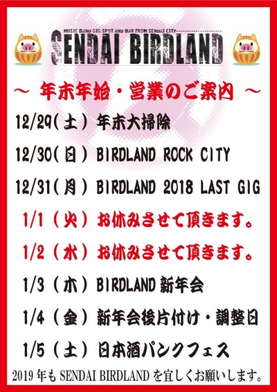 来年も仙台BIRDLANDを宜しくお願いします。