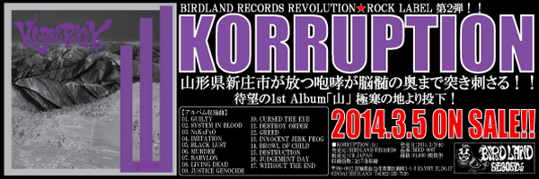 ■V.A.CLENCH THE FIST ■9月でバードランドは移転6年目を迎える事ができました! ■BIRDLAND ホームページリニューアルしました! ■KORRUPTION 1st Album「山」3/5(水)全国発売! ■BIRDLAND内レーベル「REVOLUTION★ROCK RECORDS」Official Site OPENしました!
